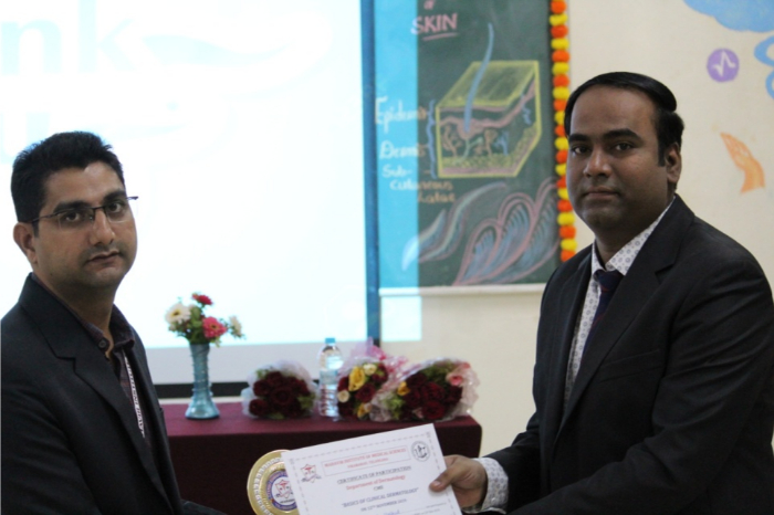 Basics of Clinical Dermatology Basics of common Dermatological conditios like cutaneous ADR, lupus erythematosus, herpes zoster and Psoriasis were discussed & recent advances in management of these conditions were highlighted. Guest Speakers: Dr. Geeta Kiran, Prof & HOD, Dermatology, Mallareddy Institute of Medical Sciences, Hyd Dr. Sudha Rani, Assoc. Prof, Dermatology, Government Medical College, Nizamabad Speakers: Dr. Ravindra Kumar .P, Professor & HOD, Dermatology, MIMS Dr. Shashikant Malkud, Assoc. Prof, Dermatology, MIMS,Dr. Shruti, Senior Resident, Dermatology, MIMS TSMC has accredited Two Credit hours for this CME |